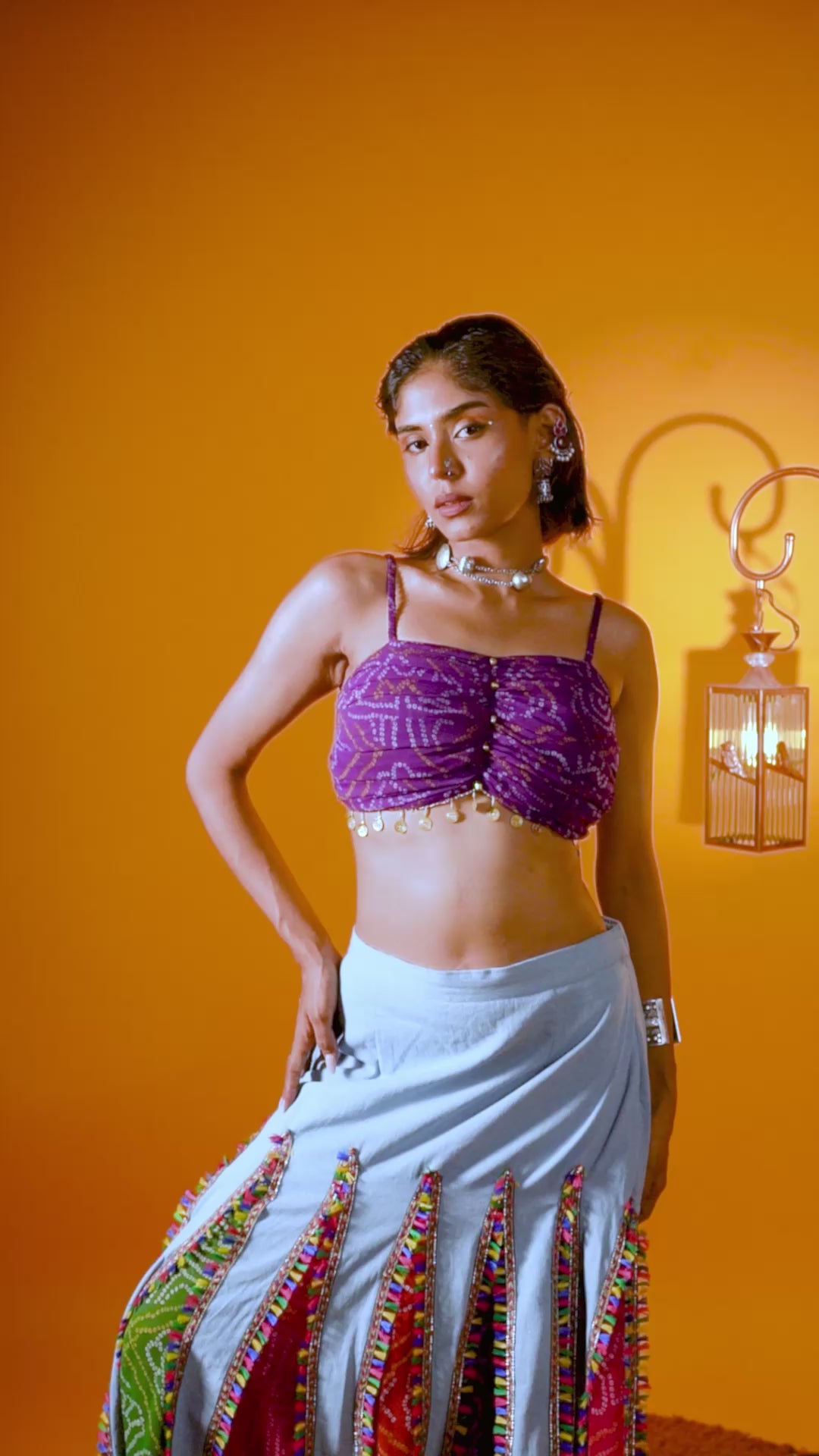 Step into the spotlight with Jamuni Ruche, a handcrafted denim jacket that celebrates the vibrancy of Indian artistry. Adorned with intricate mirror work, traditional embroidery, and delicate metallic embellishments, this piece fuses ethnic charm with a contemporary silhouette.